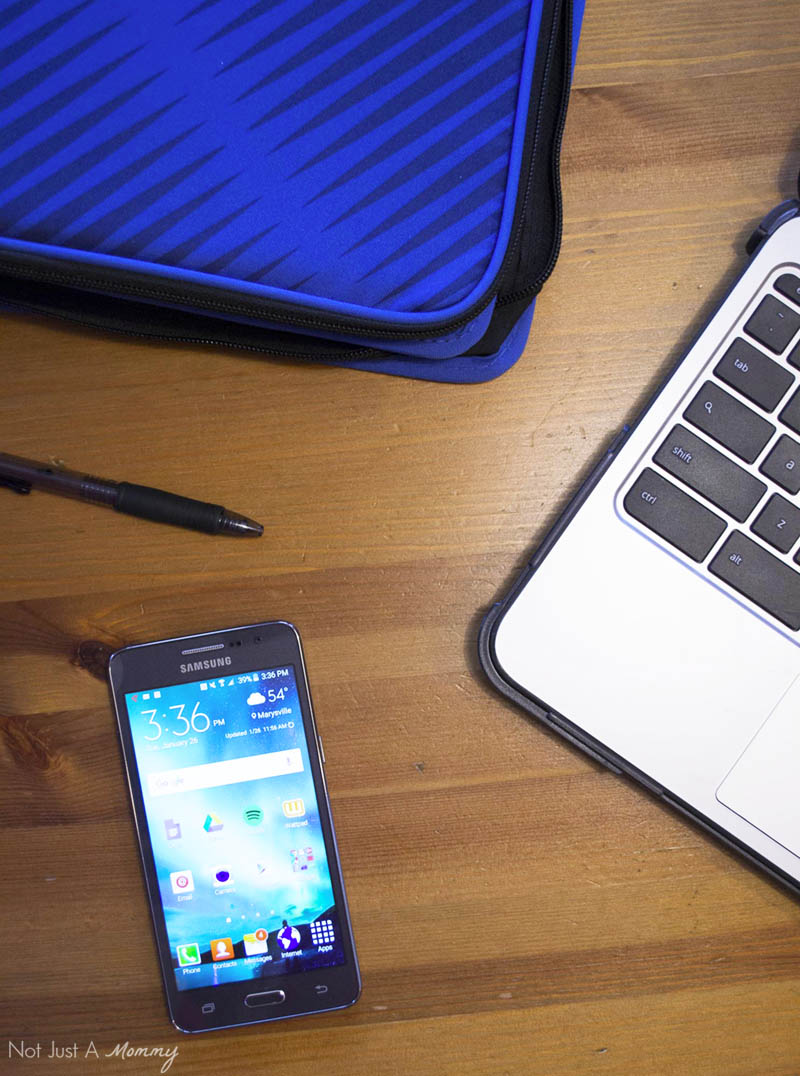 He really loves the front-facing camera aspect, something he didn’t have with his last phone…you know kids love the selfie. ย But it isn’t all just fun and games…from working on his website design assignment to online research, it is a great support to his laptop; he keeps his assignment open and does searches on his phone.