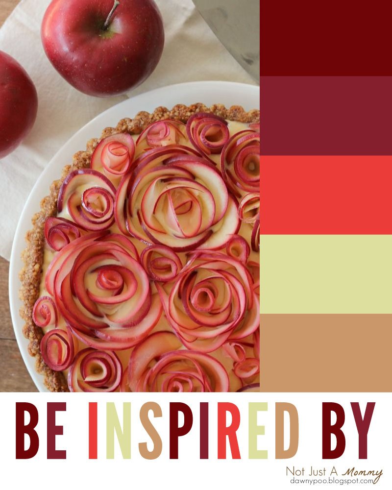 This week’s party palette is not only inspired by this gorgeous Apple Walnut Tart with Maple Custard, featured on Hip Foodie Mom, it is a clue to tomorrow’s Tuesday Tip giveaway!