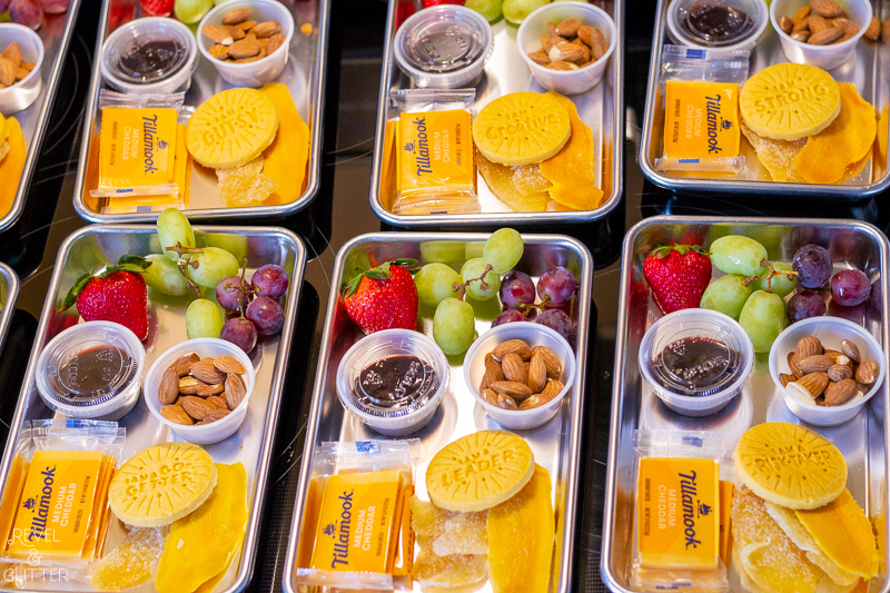 What goes into your charcuterie box is limited only to what you have available and your budget. My go-to is always Trader Joe’s, they have a great selection of everything you really need, from cheese and crackers to candy, dried fruit, and nuts.