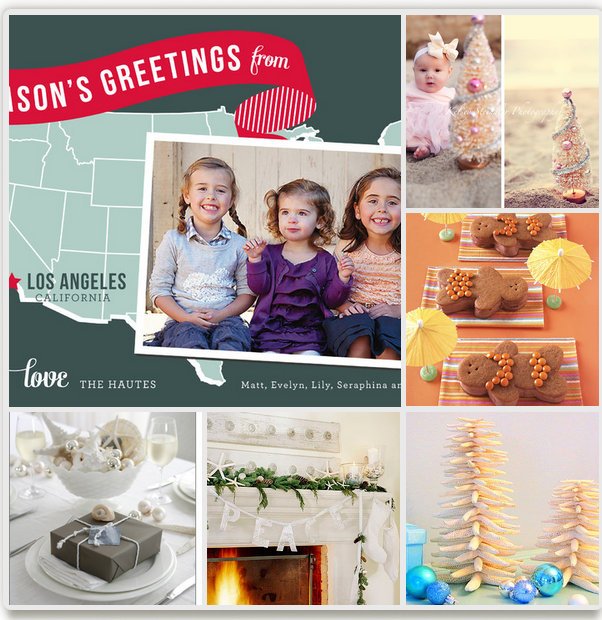 I had so much fun creating an inspiration board for Minted’s challenge, I thought I would make another one just for funsies and mark the 24 Days Of Christmas countdown. This one is inspired by their West Coast Holiday Map Postcard…Christmas on the beach!