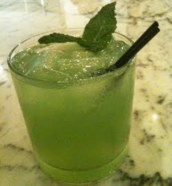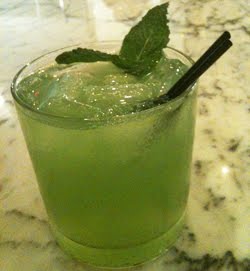 Check out this green cocktail from Michael Shearin of Drago Centro, no food coloring needed! Recipe makes one drink.