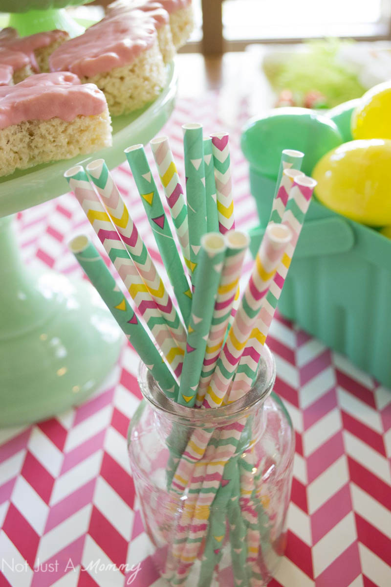 I was strolling through one of my favorite home goods store brainstorming ideas for a pretty and easy Easter table when I saw these fun and cheery straws! I’m really trying to stay away from holiday-themed partyware so they can be used all year round. Another one of my party goals is to use what I already have…organizing all of my supplies and props has completely changed my shopping habits.