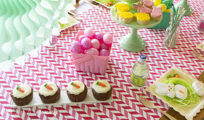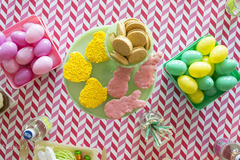 My bunny and chick treats are Rice Krispies Treats, cut with a cookie cutters and dipped in candy melts. I didn’t even make the treats myself; I cut them out of those giant sheets found at bigger box stores. Seriously, they are a lifesaver!