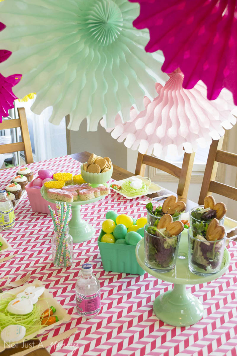 The best and easiest way to give your party space a cohesive look is to use to 2 or 3 colors but this doesn’t mean you can’t have variations of each! My colors are pink, mint green and yellow but there is a lot of creative room in the various color shades.