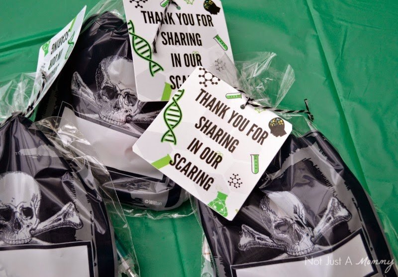 - I’m not a big Halloween candy fan…I know they’ll have lots of sweets elsewhere, so I kept the favor bag goodies simple with a mix of edible and non-edible goodies