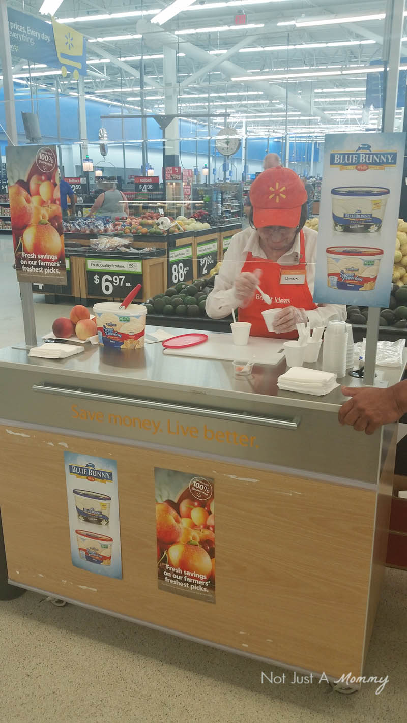 Be sure and keep an eye out for a Blue Bunny demo at your local store; I attended one and she shared a great idea of fresh, sliced peaches over vanilla ice cream.