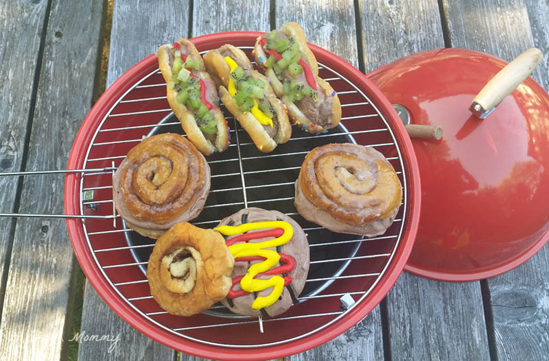 Head into Walmart for all your summer snacking needs…and plenty of ice cream. ย While there, I picked up cinnamon bun doughnuts and doughnut twists, frosting, kiwi fruit and licorice to create my hamburgers and hot dogs.