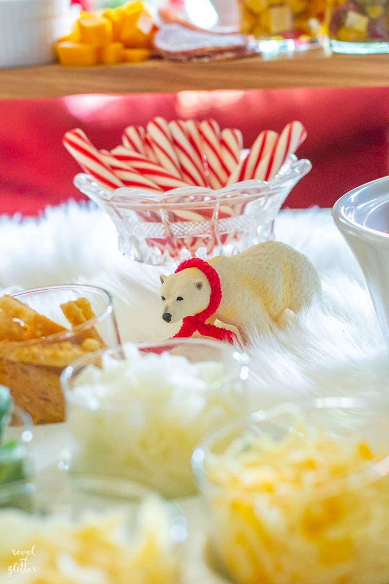 - From the faux fur rug as our table runner to furry trees and our furry friend on the bar, it was all about repeating the polar bear motif.
