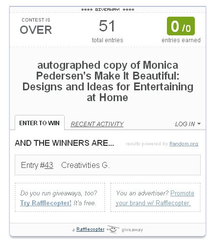 Before I launch into today’s musings, it’s time to announce the winner of our Monica Pedersen book giveaway!
