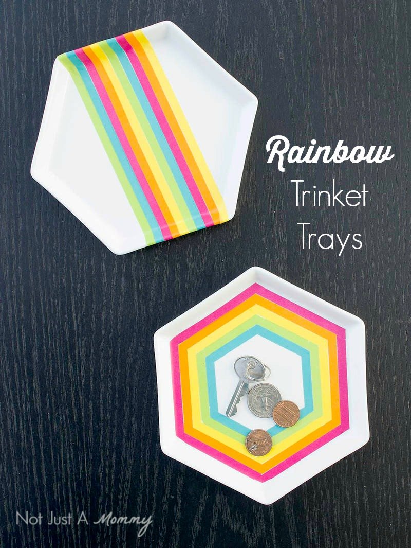 Last time, we had ourย unicorn craftย and since we can’t have unicorns without rainbows, today it’s our rainbow craft! If you are looking for more grown-up rainbow fun for your party, my trinket trays are the way to go.