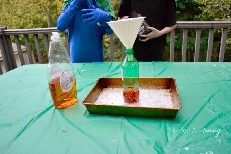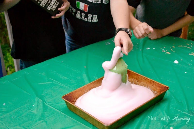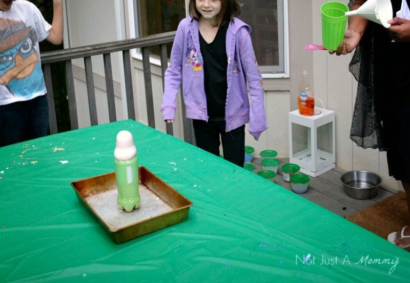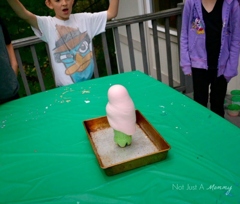 Yesterday, ย I shared how we made slime. ย Today I’m sharing the really cool demo I did thanks to Steve Spangler Science, the kid version of Elephant’s Toothpaste. ย I won’t bore you with the details, but it is very easy to do so head over to find out how to make it. ย Instead, I’ll entertain you with our pictures…