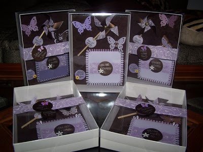 Reader Celebrity Mommy wrote me asking for some help with baby shower invites; check out her final results, loving those pretty pinwheels and butterflies! She found her boxes at PS too! So, in honor of our invites, I would like to share some more ideas to get your party started!
