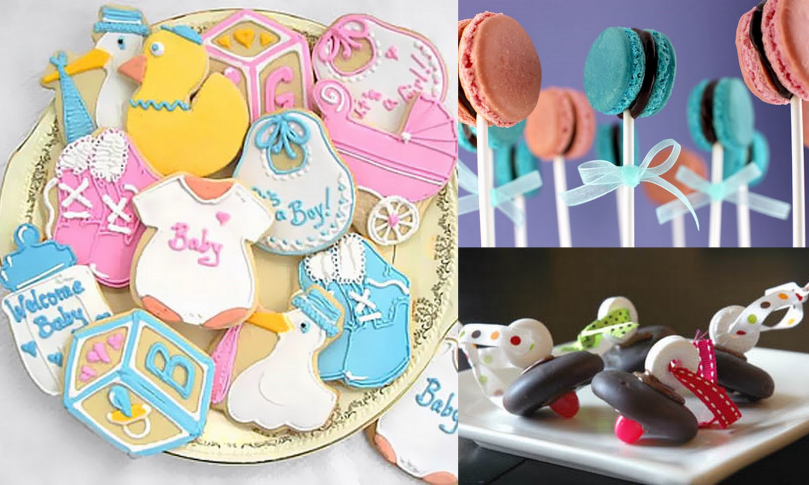 Appetizers and desserts are not only light fare but budget-friendly too. Your theme will shape your menu, for example, the Ready To Pop is all about popcorn, but there are so many generic themed treats that work for any shower. Check out these cute pacifer cookies or try your hand at these macaron pops that resemble baby rattles. Beau-coup’s cookies are fun to serve or would make great favors.