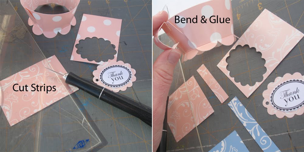 When a gal like me has such a cute flower vase, sheโs going to want to have a party. And if she has a party, sheโs going to want to have cupcakes. When that gal happens to be a graphic designer, sheโs going to want to dress them up! So I designed a little wrap to mix and match with the flowers, and thatโs how the idea was born.