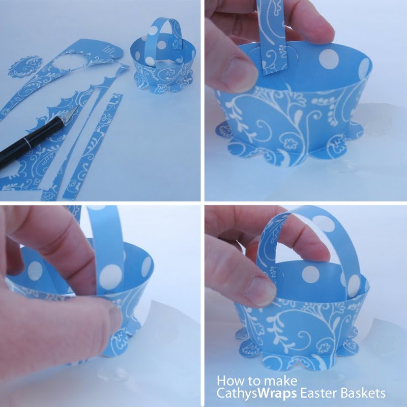 I’m all about presentation, what are some of your favorite ideas using your wraps? CS – Beyond the usual cupcakes, cookies, chocolates, candies and nuts (add a white baking liner and you can fill them with anything). Iโve had customers put the cupcake wrappers around votive candles placed right side up & upside down, others fill wrapped votive holders with fresh flowers to use as place card vases, or with paper flowers and table numbers. One customer asked how she might make teacups so I made paper handles from extra paper which led to the idea of making Easter Baskets.