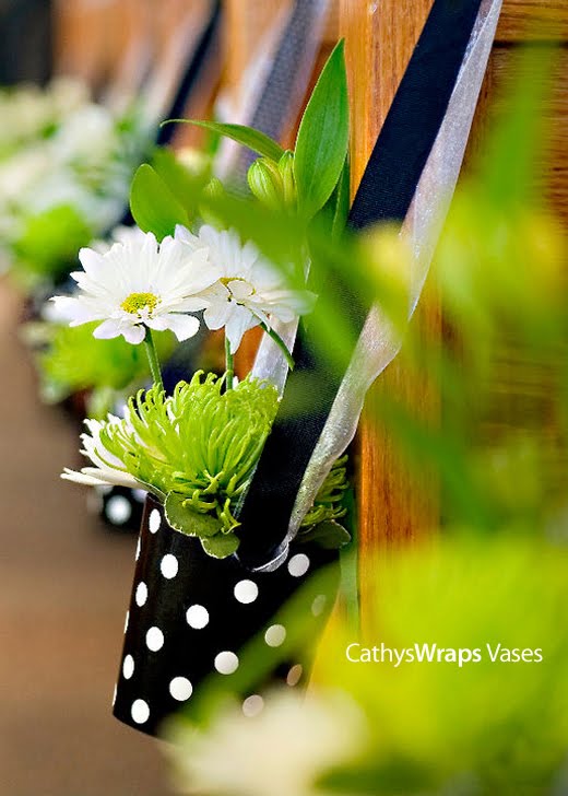 I’m a serious multi-tasker and I want my partyware to do the same. This is why I love CathysWraps ~ double-duty vases for weddings, parties and gifts. Even more fabulous, you can coordinate with other party products like grease-resistant cupcake wrappers and gift tags.