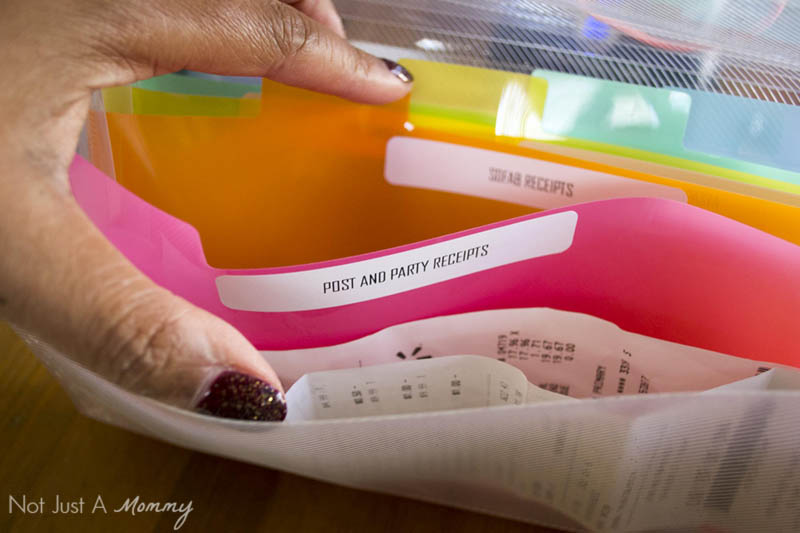 I also used the file folder labels for my mini organizer that fits in my purse; it helps keep my purchase receipts organized and separate from my coupons, so they can be filed away when I get back home.