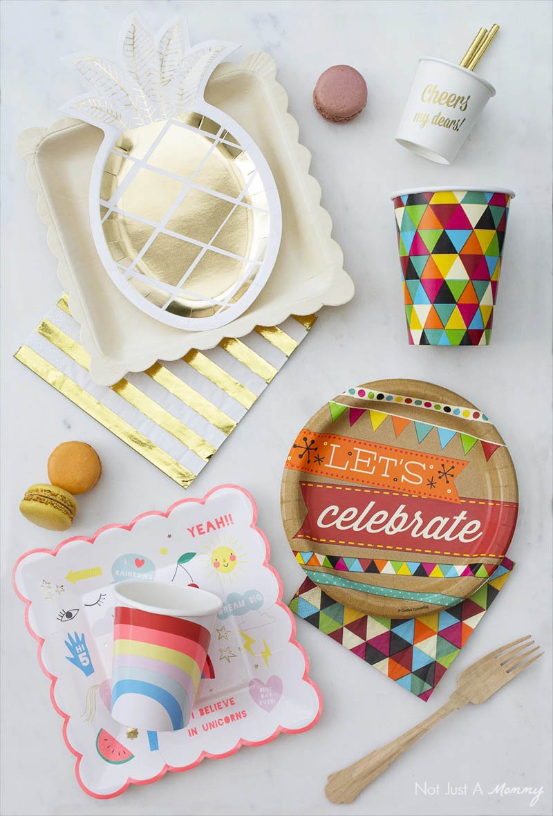 There isn’t a cute paper (wood or bamboo or plastic) cup, plate, or straw out there I can say no to. To prove my point (and the need for an intervention), I opened up one of my many storage containers to share some of my favorite disposable and affordable party products from a variety of vendors…