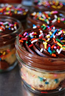 Sometimes we live a little far away from our loved ones. We wish we could blow out the candles with them on their birthdays, share a just-because treat, or hint, hint, a Mother’s Day surprise. Take the old ‘Cookies In A Jar’ idea to the next level with these ingenious ways to send your love across the miles. Love, love, love A. Party Styles’ Cake In A Can! Wouldn’t you love to be on the receiving end of her fondant creation? How about using a large jam jar like these from Delicious Days…imagine how pretty it would be if you made a layered creation? Yes, even a pie can be had…single serving jars take all the guilt out of eating a ‘whole’ pie by yourself. Check out the full tutorial at Our Best Bites. Speaking of pies, no they aren’t in a container, but these pie pops are ridiculously cute and with careful packaging, I bet you can still send them. Of course I couldn’t forget these cupcakes in a jar I’ve blogged about before….