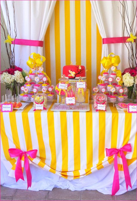A bright butterfly theme from A Blissful Nest via The Hostess Blog….