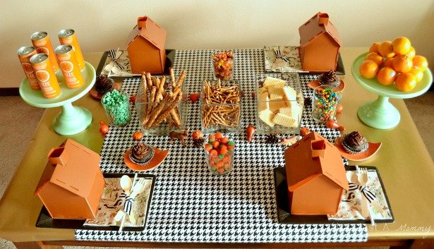 A tartan ribbon makes an elegant tie for Pottery Barn‘s antiqueย silverware. | Burberry inspired cake pops featured on Amy Atlas. | Celebrations at Home uses swatches of material to dress up drink bottles. | ย A touch of houndstooth makes simple favor bags featured onย Ruffled, elegant.ย | I am in love with My Mind’s Eye buffalo check wall backdrop made from cardstock. | ย Gorgeous chair backing from Style Me Pretty. | ย Jenny Collier’s bold tablecloth is balanced with neutral settings. | This campfire inspired table from Ruffled is the opposite, neutral tablecloth, plaid accents. | Blanket bundles from a lumberjack party from Kara’s Party Ideas.