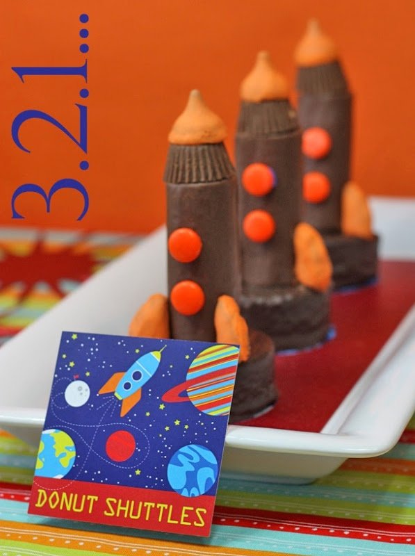 Kim from The Celebration Shoppe (love her!) is unveiling her latest collection, a very inspiring space birthday, and look at what she whipped up, mini space shuttle cakes!