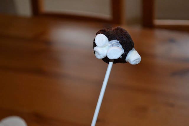So then, I dabbed half mini marshmallows in candy melts to ‘glue’ them on after I inserted the candy sticks…OK…back on track…we can do this.