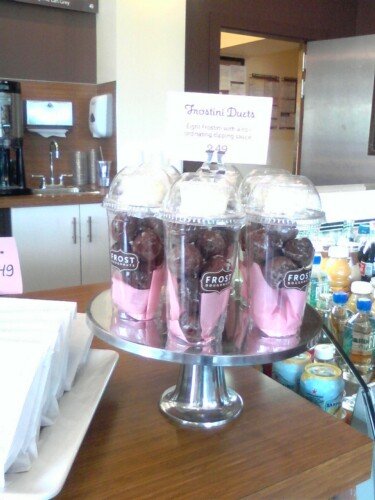 Don’t you love this idea? Donut holes with a little container of designer frosting for dipping, Frostini Duets! Oh yes, we are having those on the next trip. And it will be soon…
