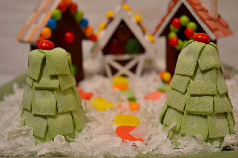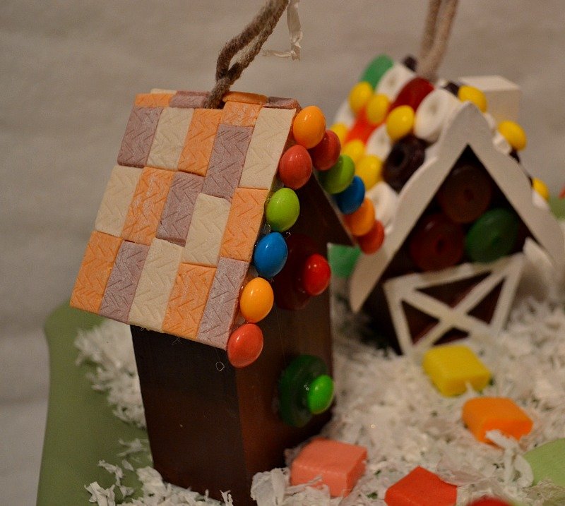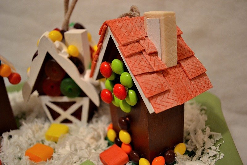 Shingles made from Big Redยฎ gum and a Skittles wreath around the ‘window’ and trim…I know, a window.